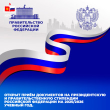 Открыт приём документов на Президентскую и Правительственную стипендии Российской Федерации на 2025/2026 учебный год.