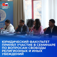 Преподаватели и студенты юридического факультета КРСУ приняли участие в работе семинара на тему: «Свобода религиозных и иных убеждений в Кыргызской Республике: практика правового регулирования и рассмотрения отдельных вопросов в соотношении с конституционными и международными стандартами».