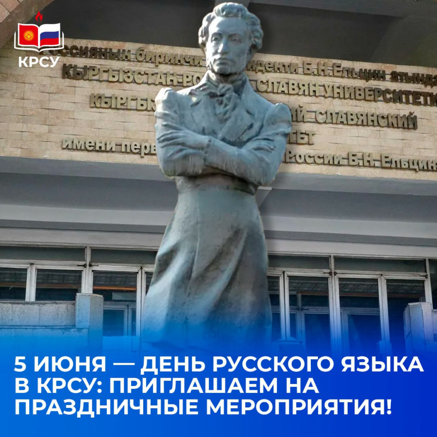 В преддверии дня рождения Александра Сергеевича Пушкина и Международного дня русского языка приглашаем вас принять участие в праздничных мероприятиях, которые состоятся 5 июня в Кыргызско-Российском Славянском университете.