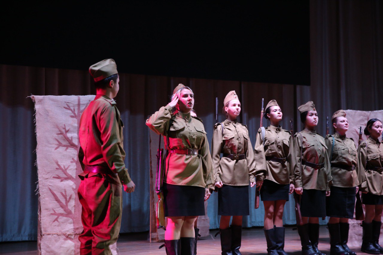 Премьера спектакля «А зори здесь тихие» в КРСУ, посвящённая 80-летию Победы, стала настоящим событием. Постановка по повести Бориса Васильева, реализованная под чутким руководством режиссёра Анны Шмыриной, вызвала бурю эмоций и запомнится надолго. Зал был полон до последнего места — настоящий аншлаг. В числе зрителей — не только студенты и преподаватели КРСУ, но и почётные гости из стран СНГ. Многие признавались: давно не испытывали такого глубокого потрясения от театра.
