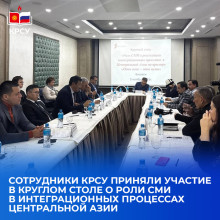 В Бишкеке состоялся круглый стол на тему «Роль СМИ в реализации интеграционных проектов в Центральной Азии на примере инициативы „Один пояс — один путь“, организованный Центром экспертных инициатив «Ой Ордо». В мероприятии приняли участие представители научного и экспертного сообщества, государственных структур, средств массовой информации и высших учебных заведений, в том числе сотрудники Кыргызско-Российского Славянского университета.