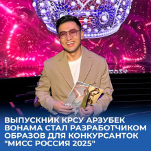 Выпускник факультета архитектуры, дизайна и строительства Кыргызско-Российского Славянского университета Арзубек Вонама вновь заявил о себе на российской модной сцене: он стал разработчиком конкурсных образов для участниц престижного национального конкурса красоты «Мисс Россия 2025».