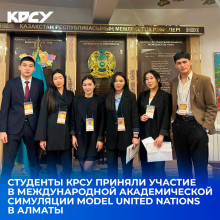 Студенты первого курса Кыргызско-Российского Славянского университета приняли участие в международной академической симуляции Model United Nations, которая прошла в Алматы на базе Каспийского университета.