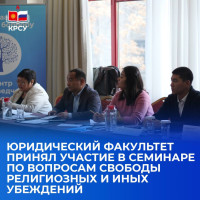 Преподаватели и студенты юридического факультета КРСУ приняли участие в работе семинара на тему: «Свобода религиозных и иных убеждений в Кыргызской Республике: практика правового регулирования и рассмотрения отдельных вопросов в соотношении с к
