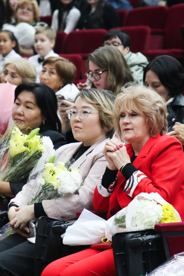 Особое внимание в этот день было уделено учителям школы КРСУ — их чествовали и поздравляли ученики, студенты и руководство университета. Юные участники подготовили трогательные стихи и слова благодарности, а концертная программа включала песни, танцевальные номера и искренние поздравления в адрес наставников. Атмосфера праздника была наполнена теплом, радостью и живыми эмоциями.