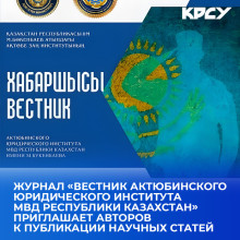 Журнал «Вестник Актюбинского юридического института МВД Республики Казахстан» приглашает авторов к публикации научных статей.