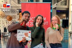 Команда КРСУ — Наталья Цевелева, Елизавета Бледных, Карина Ким, Богдан Шмидт и Александр Ким под руководством Жахонгира…