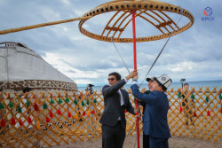 Посол России в Кыргызстане Сергей Ванакунов и зампред Кабмина Республики Эдиль Байсалов установили на берегу Иссык-Куля юрту,…